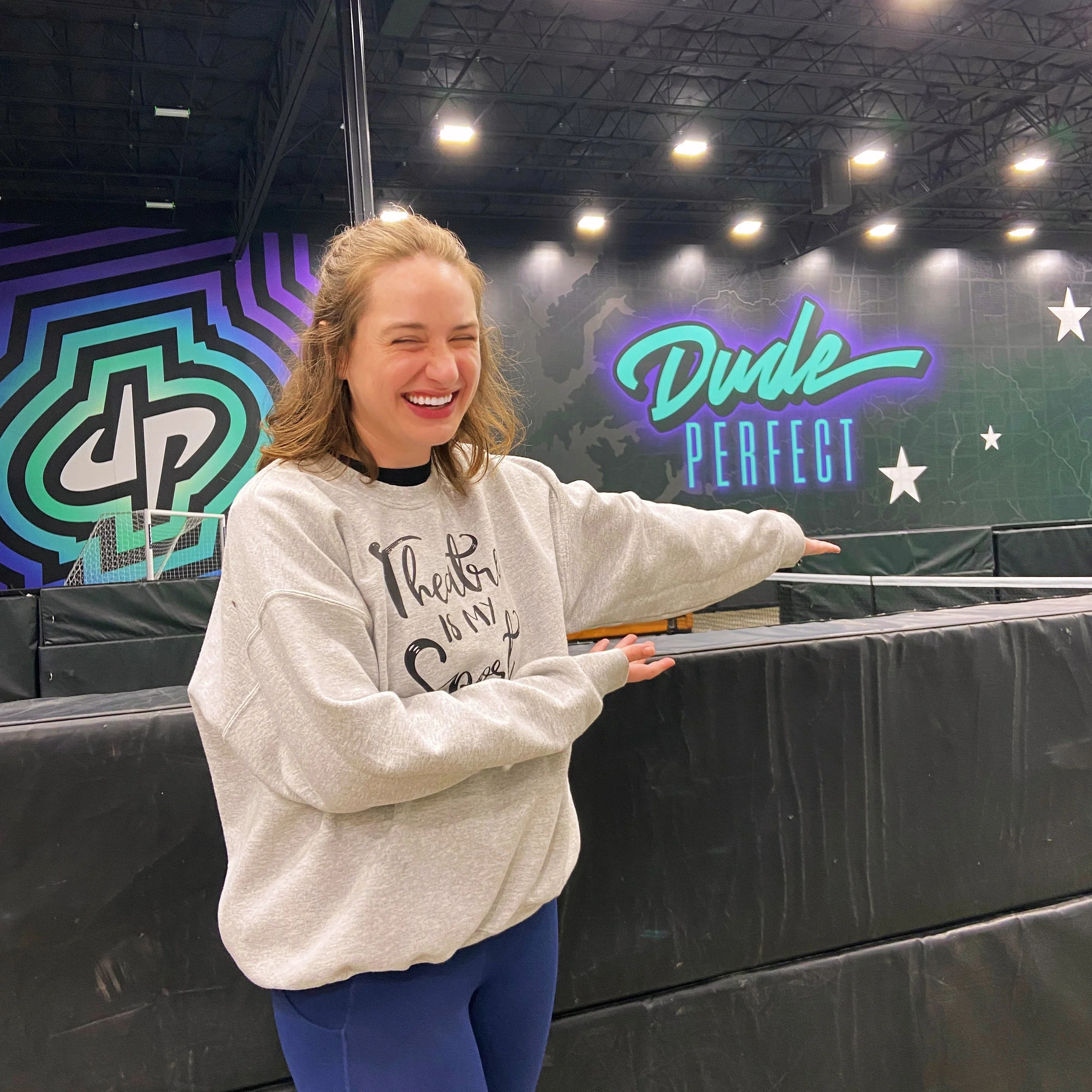 When she’s not auditioning and performing, Darcy serves as a subcontractor for the Dude Perfect Art Team. She manages on set wardrobe, organizes props, and aids in the development of set and art pieces.